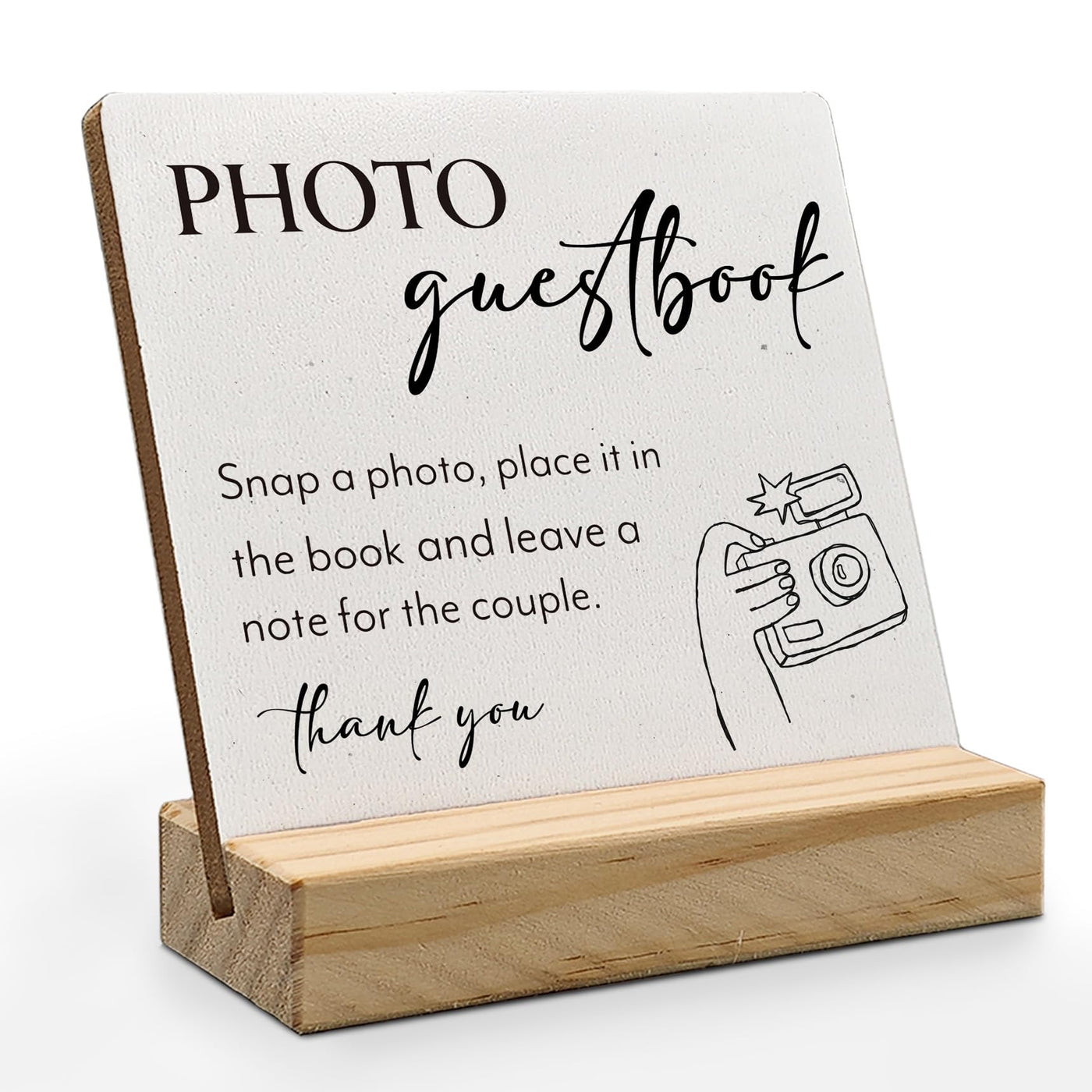 ANIANG Wedding Guestbook Desk Decor, Wedding Guest Book Sign Wood Plaque, Guest Book Signs forWedding, Photo Guestbook WeddingWo