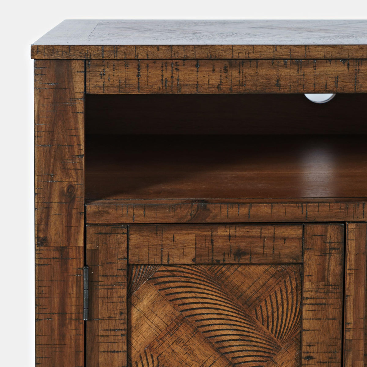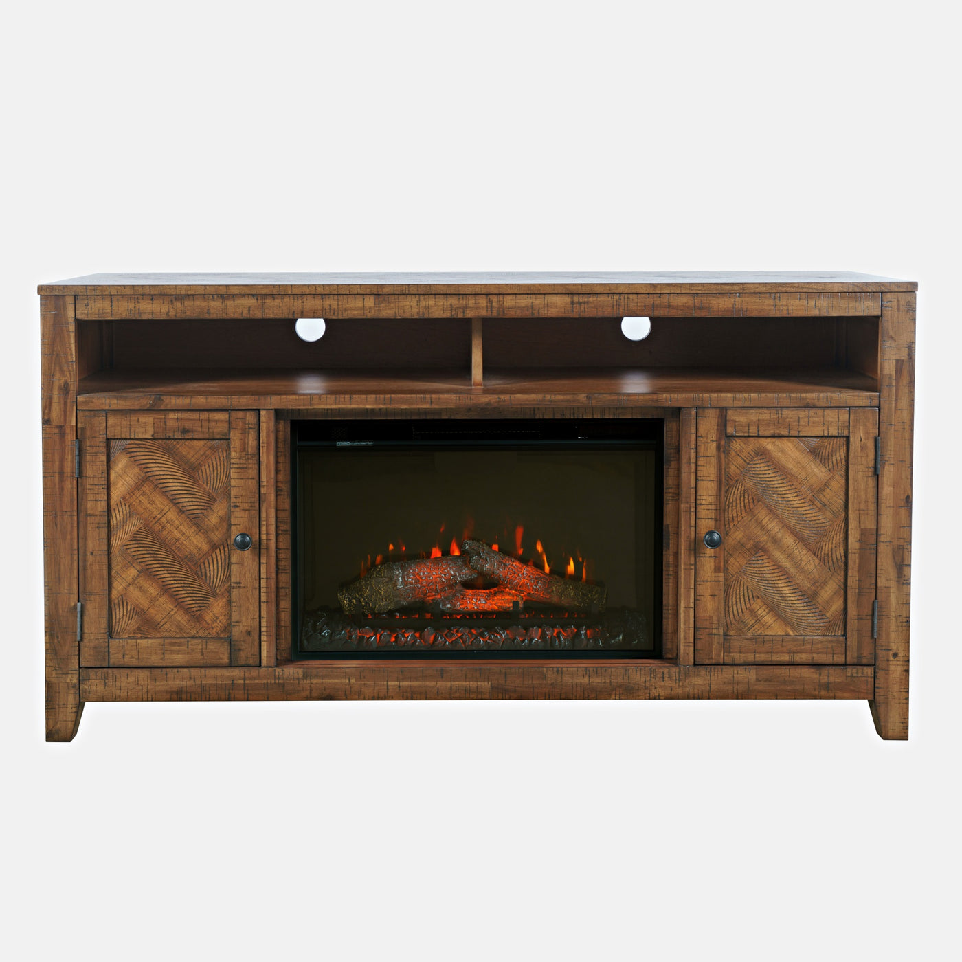 A bold contemporary modern chevron pattern combined with the look of distressed Acacia make the Fairview Fireplace Fireplace Media Console Cabinet a focal point in your home. Made from beautiful solid Acacia and veneer with a modern chevron pattern, each piece showcases the natural beauty of the wood with weathering and intentional stress markings. This Fairview Fireplace Media Console Cabinet is perfect for adding modern charm and style to any room in your home with tempered glass and beautiful embers that provide real heat and plenty of storage space. Imagine the flicker of the faux wood logs, providing a captivating focal point, while the tempered glass adds a touch of sophistication to the transitional design. Whether you're hosting a family movie night or enjoying a quiet evening with a book, the Fairview Fireplace offers the ideal ambiance for any occasion.