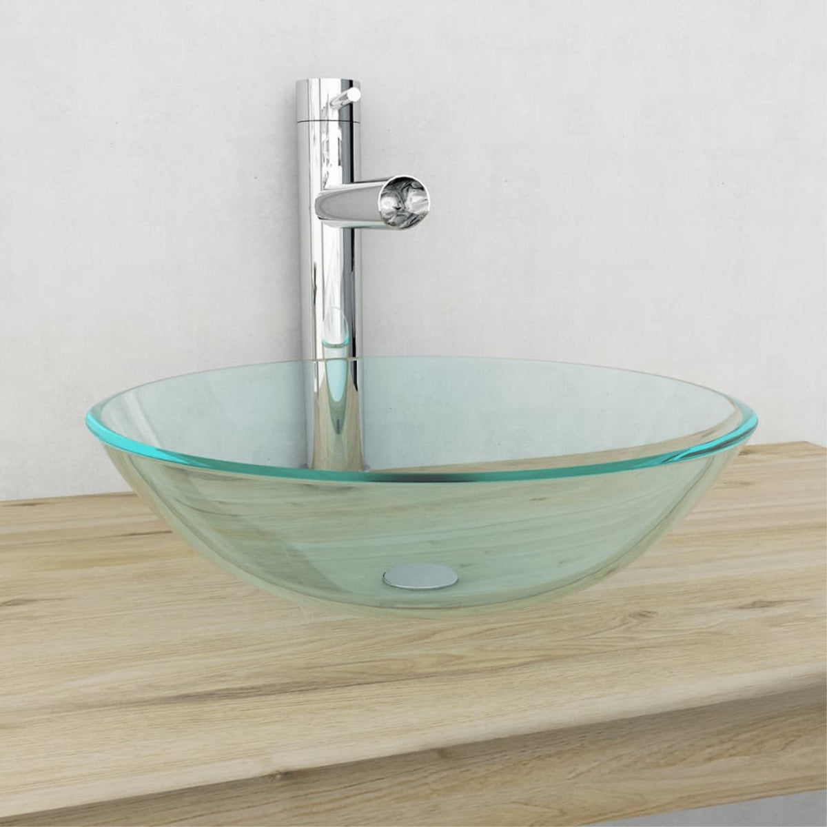 This wash basin, made of high-quality tempered glass, will make a stylish addition to any bathroom, washroom or powder room. It has been designed for above-counter installation.This attractive basin is not only practical for everyday use, but also a real adornment for your living space. It will suit any interior style. In addition, the basin is very easy to clean.The drain hole is 1.8'' in diameter. Please note that the tap is not included in delivery.