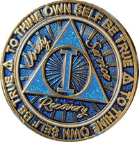 1 Year Aa Medallion Cosmic Blue Glitter Gold Plated Chip