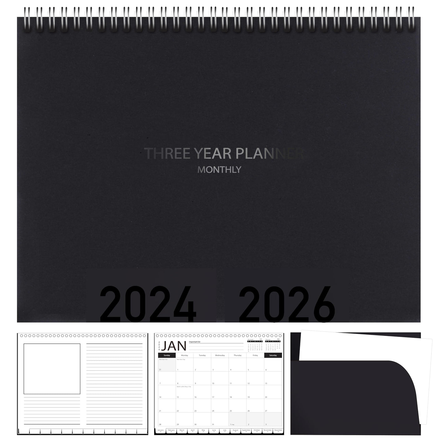 3-Year Calendar Planner, 2024-2026 Monthly Schedule Organizer Flip Calendar Diary With Tabs, Spiral Bound Top, Black, 8.5 X 11 I