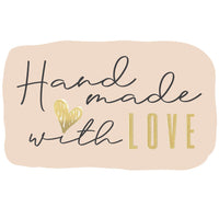 300 Handmade With Love Stickers In Sheets | 1.75' X 2.75' Special Cut Size | Typical Shape Design With Gold Foil And Light Pea