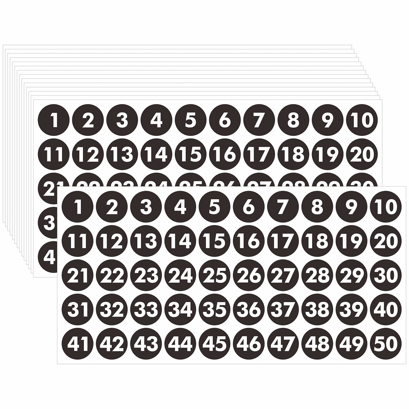 Hebayy Is An Experienced Household Goods Supplies Producer And Aiming To Provide The Best Quality And User Experience.Value Pack: It Comes With 750Pcs Black Round Stickers On 15 Flat Sheets, Quite Enough To Satisfy Various Labeling Needs. Each Measures 1 In Diameter. A Good Helper To Number Something And Keep Life Organized.Smart Design:Black Round Stickers Are Distributed On 15 Flat Sheets, Each Sheet Printed With 1 To 50 Numbers, Perfect For Marking Various Objects. The White Number On The Black Background Is Chic And Easy To Read, Making Your Labels More Clear.Premium Quality:Made Of High Quality Paper, Printed With Vegetable Oil-Based Ink, Keeps Your Decor Bright And Odorless, No Harmful Substance, Safe To Use. Permanent Adhesive Firmly Sticks To Flat Surfaces, Not Easy To Fall Off.Easy To Use:Peel Off And Stick Wherever You Want, Done! Self-Adhesive Stickers. Sticks Great On Paper, Shirts, Plastic Bags And Most Surfaces.Multiple Usages:Perfect For Home, Office, School, Classroom, Parties, Conference And Meeting Rooms, Cafeterias, Organizing And Inventory. Easy To Apply On Shirts, Folders, Organizers, Desks Or Pc. Also Suitable As Teaching Supplies, Great For Teachers To Teach Preschoolers How To Count.