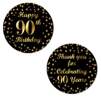 90Th Birthday Round 2 Inch Big Glossy Stickers, Thank You For Celebrating 90 Years Black And Gold Labels, Great For Party Favors
