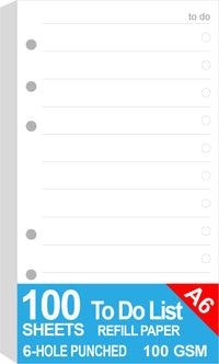A6 To Do List Refills For Filofax Personal Size Planner/Binder, 6 Hole Punched, 100 Sheets/200 Pages, To Do Planner With Check L