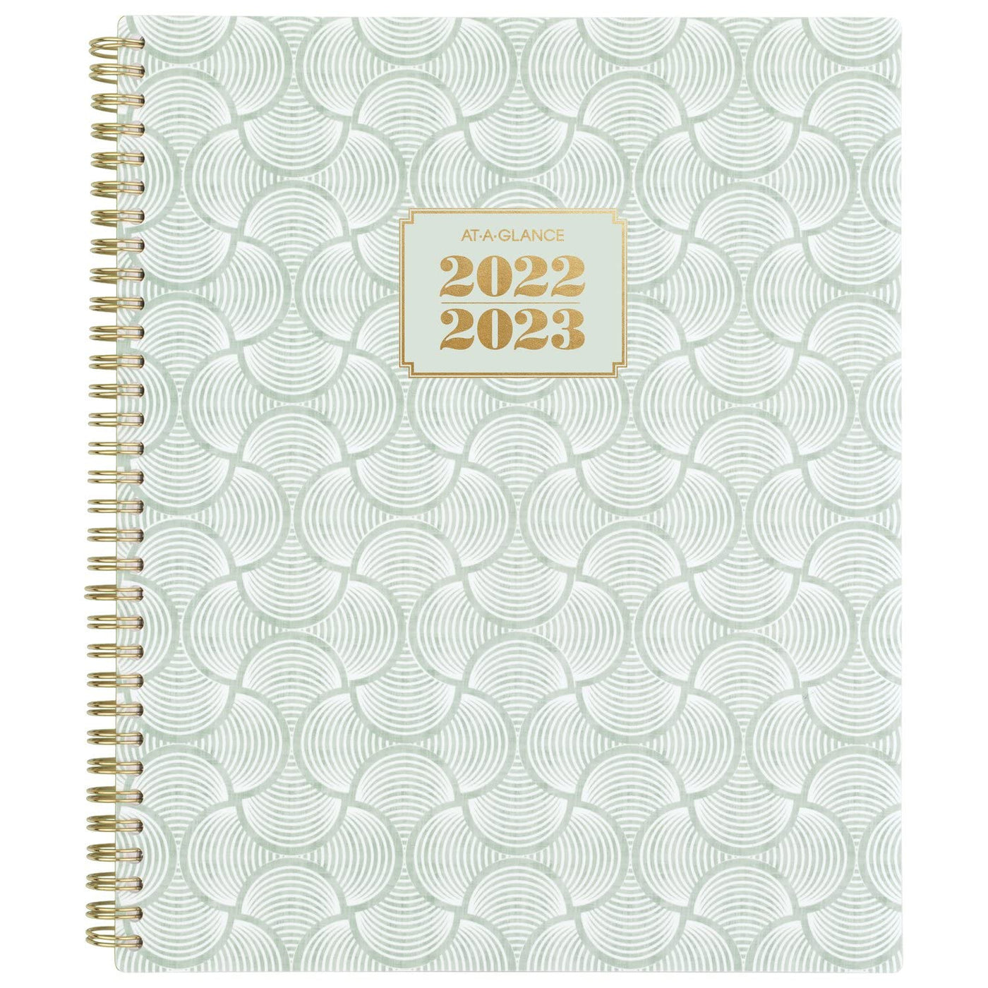 At-A-Glance Badge Geo Weekly Monthly Planner Covers 13 Months From July 2022 - July 2023. Guaranteed To Last All Year.* Cover Features A Bold Geometric Design In Green And White With A Gold Date Badge. Plan Your Schedule Without Fear Of Distracting Ink Bleeding. Our Improved, High-Quality Paper Has Superior Ink Bleed Resistance, Which Keeps Plans Neat And Legible. One Week Per Two Page Spread Has Ruled Daily Columns And A Goals Section For Each Day Of The Week. Tick Marks Let You Customize And Plan For Multiple Goals. Pages Measure 8-1/2' X 11'. One Month Per Two Page Spread Has Unruled Daily Blocks, Notes Space And Past/Future Month Reference Calendars. Each Month Is Tabbed In Rotating Colors. Special Pages Include A Holiday List, 7 Contacts, 6 Notes, 3 Year Reference Calendar And Event Calendar. Double-Sided Poly Pocket Stores Loose Sheets. Interior Pages Feature A Clean Font Printed In A Rotating Complementary Palette. Durable Cover Has Gold Twin Wire Binding. *Acco Brands Will Replace Any At-A-Glance Planner That Is Returned Within One Year From The Date Of Purchase. This Guarantee Does Not Cover Damage Due To Misuse Or Abuse. Contact Acco Brands Consumer Affairs For Instructions.