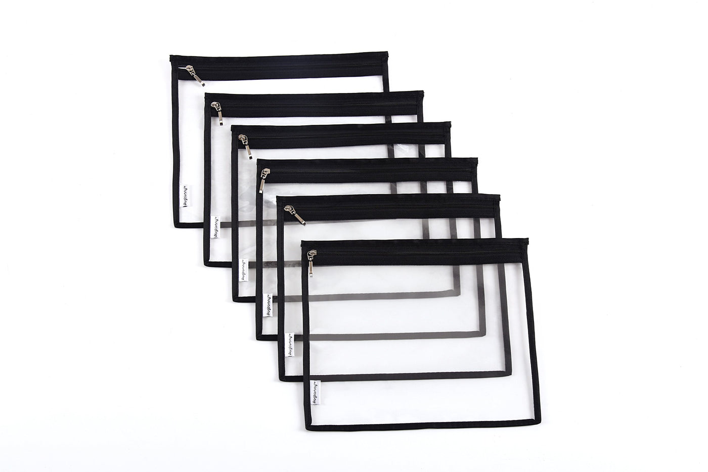 Augbunny Multi-Purpose Water Resisitant Clear Pvc Organizer Bag Pouch With Zipper Closure 6-Pack