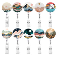 Badge Reel Retractable Nurse Badge Holder Cute Name Decorative Badge Reels With Clip On Id Card Holders (10 Pack Mountains Sun M