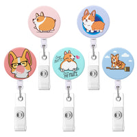 Badge Reel Retractable Nurse Badge Holder Cute Name Decorative Badge Reels With Clip On Id Card Holders (5 Pack Funny Dog)