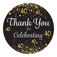 Black And Gold 40Th Birthday Thank You Stickers - 1.75 In - 40 Labels