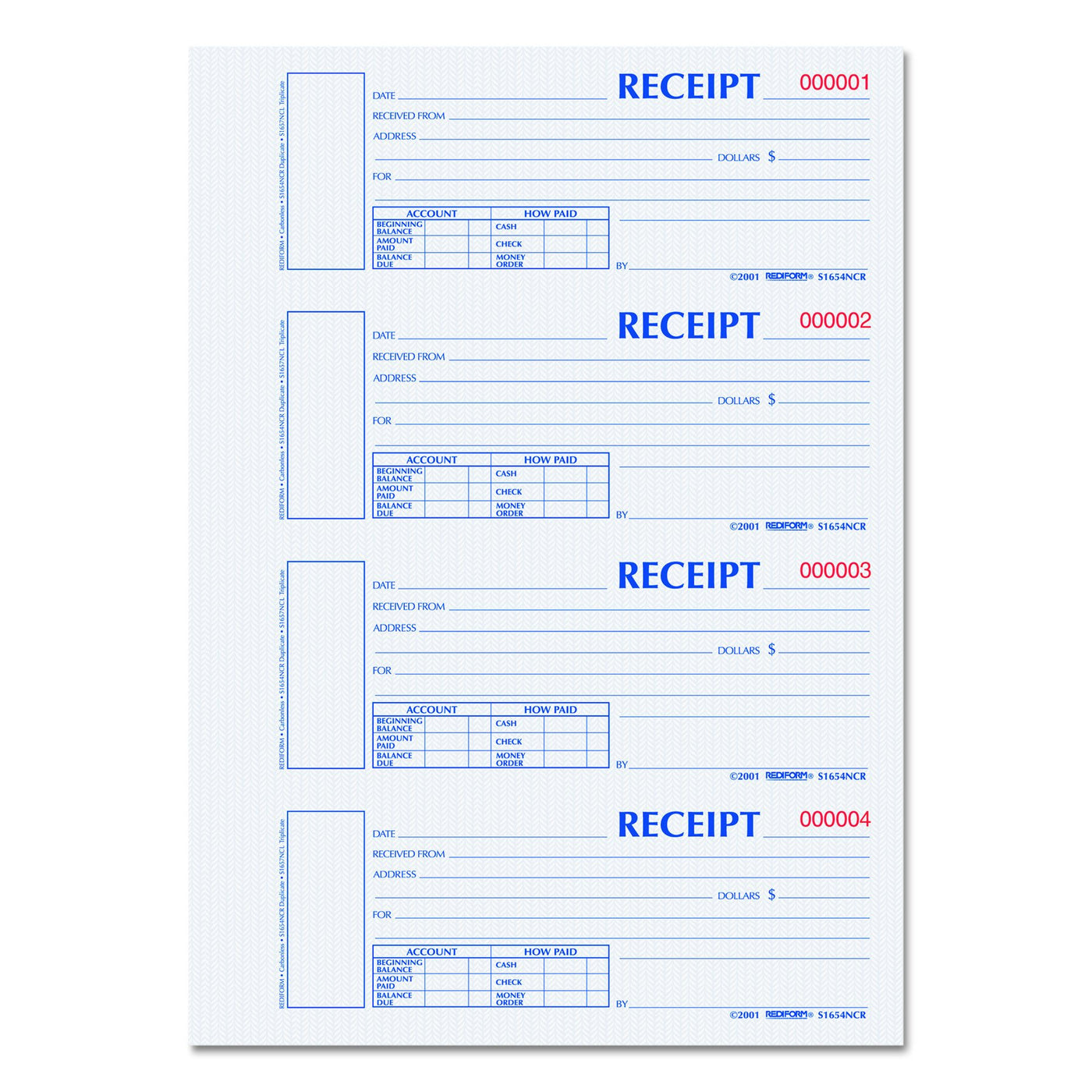 Blueline Rediform Hardcover Carbonless Numbered Money Receipt Book, 300 Duplicate Sets Per Book (S1654Ncr)