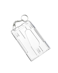 Quantity: 10 Sets(Card Holder Vertical + Keyring Locking Catch)Style: Verticalmaterial : Hard Plasticcard Approx Wxl: 60Mmx 100Mm (2 3/8 X 3 15/16 Inch) (Credit Card Size)Vertical Format With Side Loading Thumb Slot For Easy Removing Card