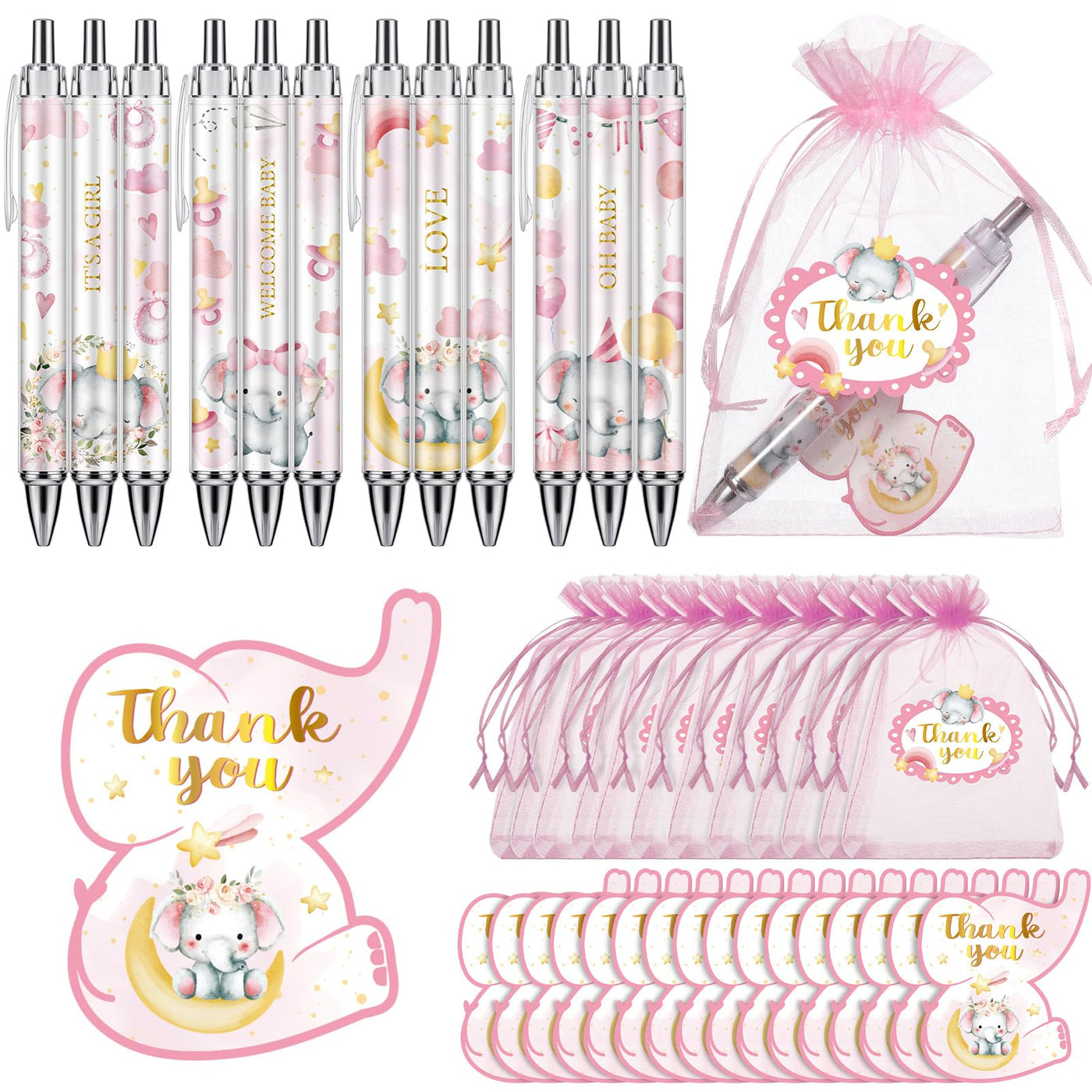 Chuangdi 50 Sets Baby Shower Favors Gifts For Guests Includes 50 Pcs Ballpoint Pens, Thank You Cards And Organza Bags(Trendy Sty