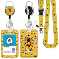 Cute Bee Kind Lanyards For Id Badges, Retractable Id Badge Holder With Detachable Lanyard, Fashionable Badge Reel Heavy Duty Wit