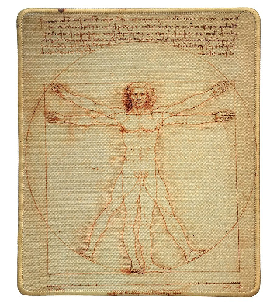 Dealzepic - Art Mousepad - Natural Rubber Mouse Pad With Famous Painting Of Vitruvian Man By Leonardo Da Vinci - Stitched Edges