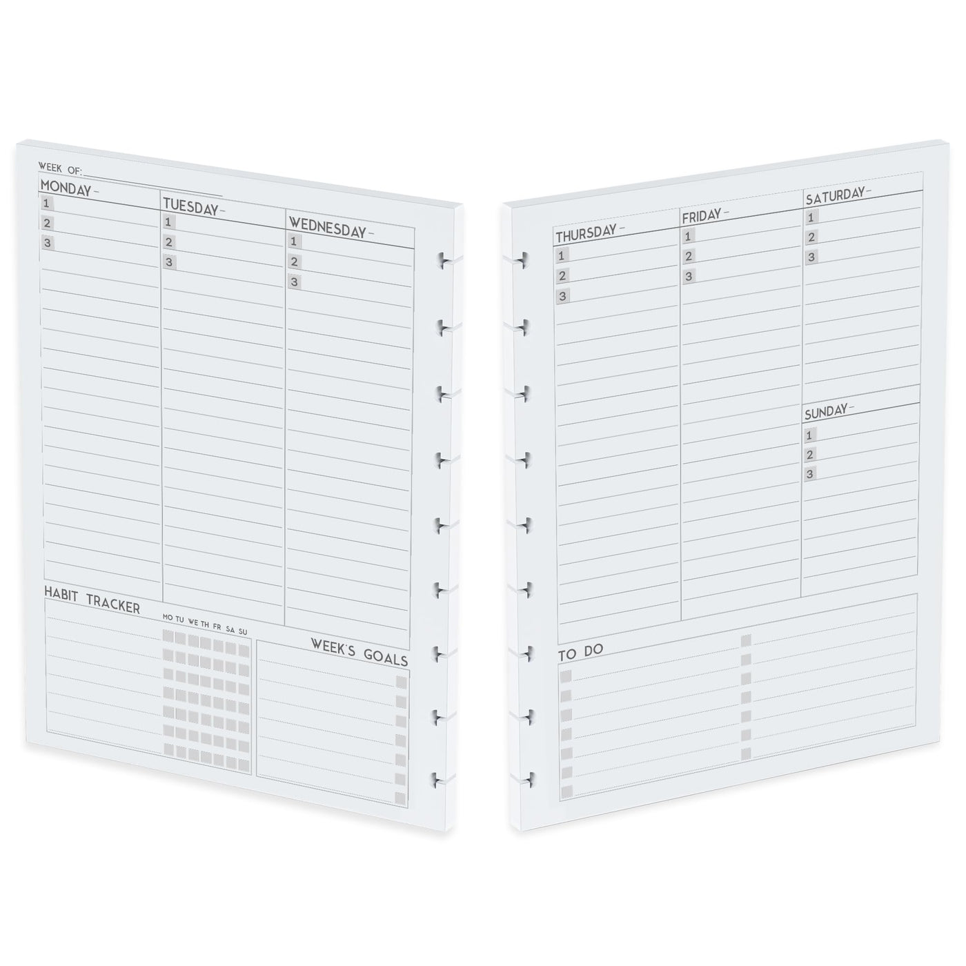 Discbound Undated Weekly Plan Paper Refill, 120 Gsm, 80 Sheets/160 Pages, Happy Planner 9 Disc Pre-Punched Inserts, Loose Leaf,