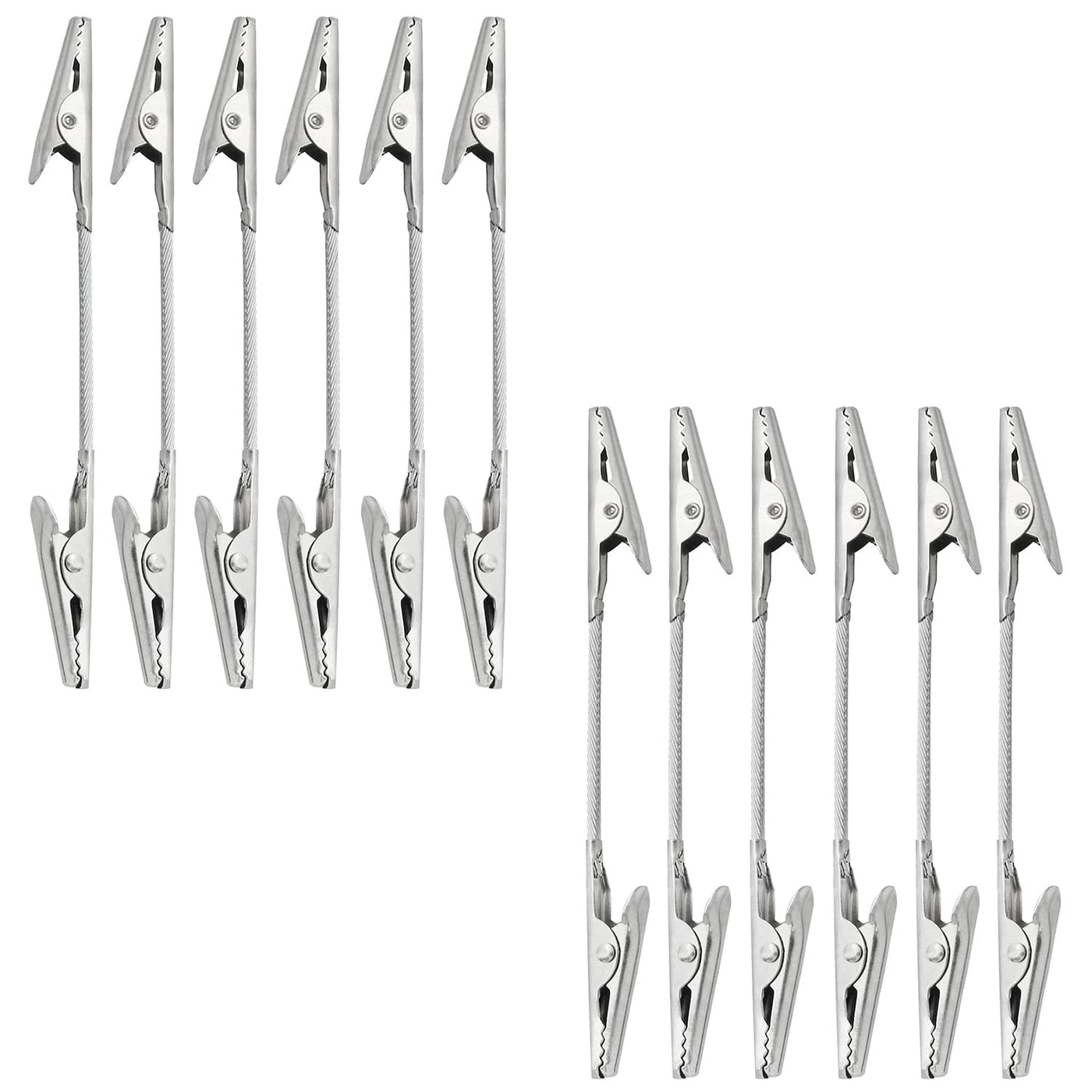 Specification: Product Name: Double Head Crocodile Clip Material: Metal Color: Silver Weight: Approx. 4G/1Pc Size: Overall Length: 102Mm/4 Inch Wire Diameter: 2Mm/0.08 Inch Package Contains: 12Pcs Double-Headed Crocodile Clips
