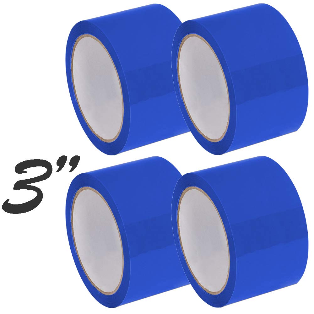 Electriduct 3 Inch Blue Packing Tape - 1.85 Mil Strong Heavy Duty Industrial Grade Shipping Tape (4 Rolls)