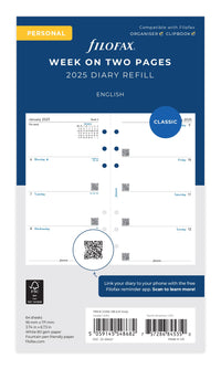 This Filofax Personal 2025 Diary Refill Features A Qr Code On Every Day Which, When Used Together With The Filofax Reminder App, Allows You To Plan On Paper And Review On Your Phone. Simply Download The Free Filofax Reminder App And Scan The Qr Code On The Date Of Your Choice. This Will Allow You To Not Only Copy Appointments From Your Diary Onto The App, But Also Set Up Reminders. The Appointments Can Also Be Synced With Your Phone'S Calendar. This Innovation Will Allow You To Always Have The Important Contents Of Your Diary With You. This Filofax Personal 2025 Diary Is A Week On Two Pages Format In English, With The Week To View Starting On A Monday. January To December 2025. Paper Size 95Mm X 171Mm, Drilled With Six Round Holes. Made In The Uk.