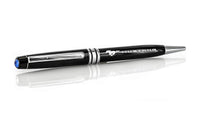 Ford Luxurious Jet Black Sheen Mustang Ballpoint Pen Enriched With A Swarovski Sapphire Blue 6Mm Crystal. Silver-Trimmed Metal P