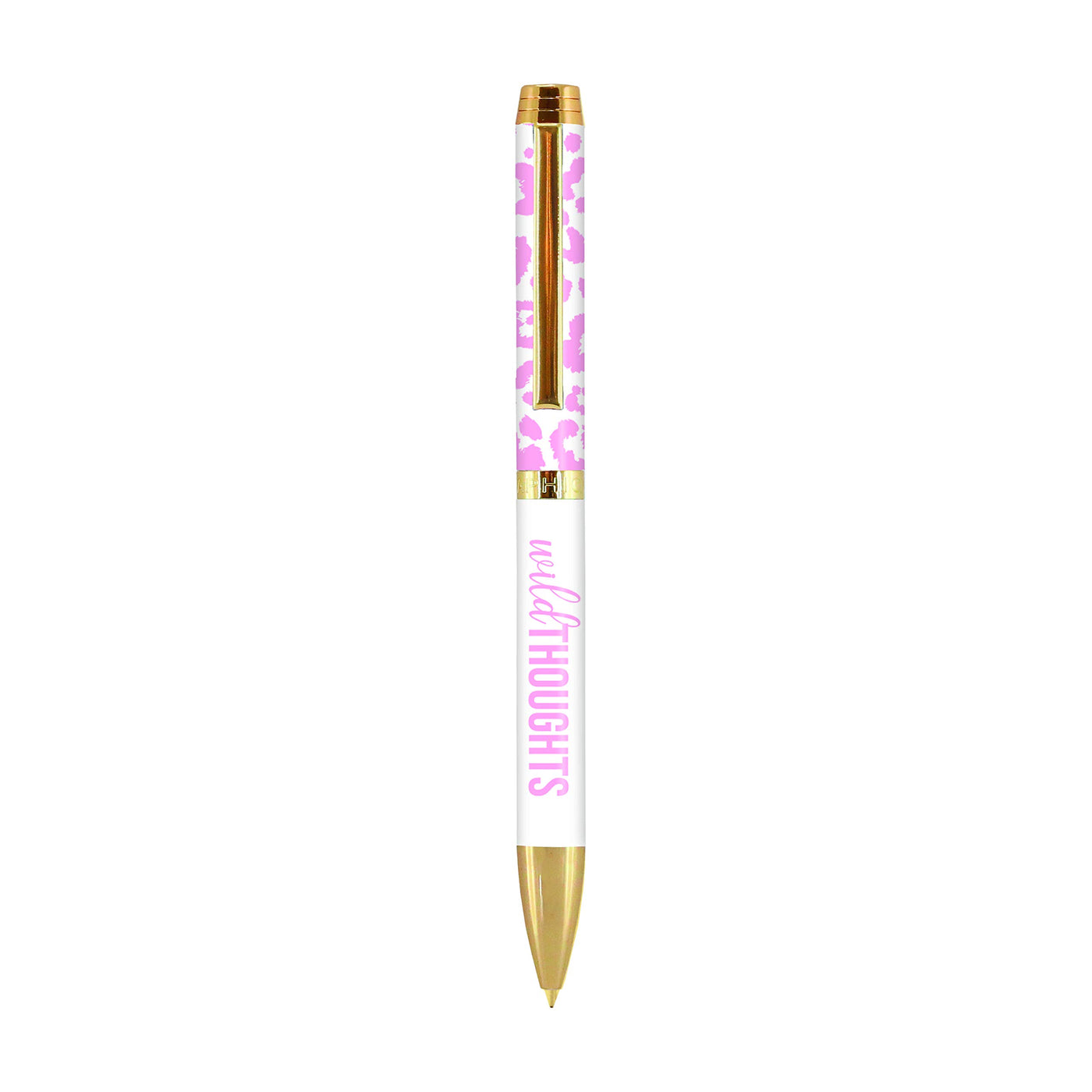 Graphique Fashion Pen, 5.5' Refillable Black Ink Ballpoint Pink Cheetah W/Wild Thoughts Quote & Matching Gift Box, Makes A Beau