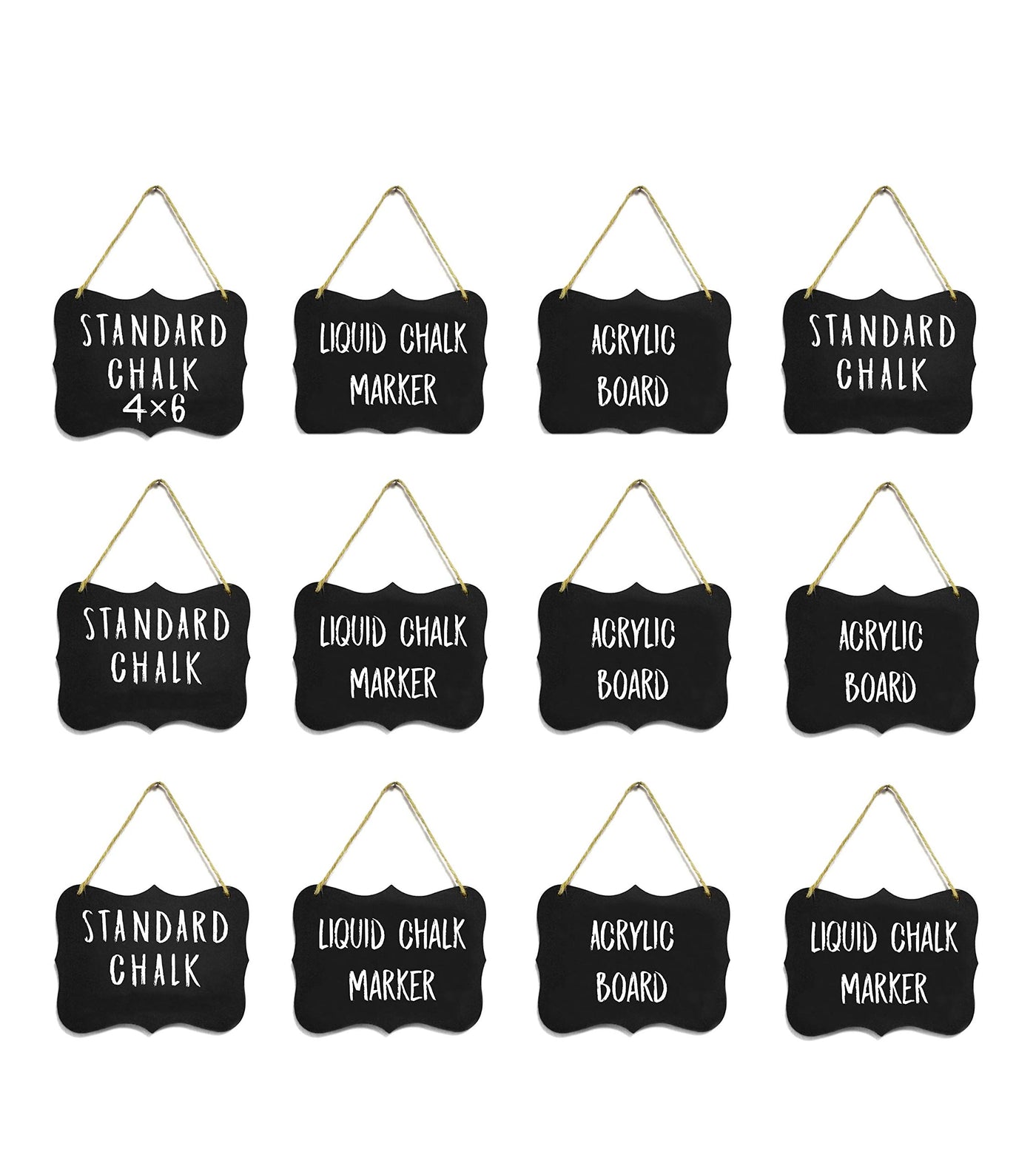 Advanced Group Corp.S Erasable Chalkboards Are A Fun And Charming Solution To Sharing Notes With Loved Ones And Creating Beautiful And Attractive Signs And Displays For Personal And Professional Use! These Durable And Easy To Use Chalkboards Can Be Used For A Variety Of Fun And Exciting Activities. Express Yourself And Be Creative! These Signs Are Compatible With White And Colorful Chalk And Liquid Chalk Markers On The Other Side That Will Let You Add A Splash Of Color To Special Events And Are Perfect For Creating Vibrant, Decorative Labels And Displays For Your Home, Business, Or Elsewhere!About This Product:- Set Of 12- Acrylic Chalkboards- Hanging With String- For Personal & Business Use- Create Attractive Displays- Reusable- Compatible With Standard & Liquid Chalk Markeradvanced Group Corp.S Erasable Chalkboards Are Convenient And Functional. Use Them To Leave Messages Around The Home For Family Members, As Seating Arrangements At Special Occasions, For Educational Purposes Or To Create Affordable, Diy, Reusable Displays For Your Business. They Are Perfect For Storefronts, Restaurants, And Bars! Attract Customers To Businesses And Special Events With Charming Chalkboard Displays In Your Store Window Or To Create Attractive Menu Displays That Can Be Conveniently Featured.Advanced Corp.S Erasable Chalkboards Are A Teachers Best Friend! Educators Can Use Our Chalkboards To Create Reusable Displays Or Signs For Centers Or Student Groupings In Lieu Of Using Chart Paper That Is Costly And Harmful To The Environment. Clean Up Is A Cinch! Easily Wipe Off Chalk To Create A Blank Slate For Future Use! Uses For These Versatile Chalkboards Are Endless And They Come In A Set Of 12 To Accommodate Projects That Require Multiple Displays. Purchase These Must Have Boards Today And Add A Touch Of Charm To Your Home, School Or Next Event. They'Re Sure To Be A Hit!