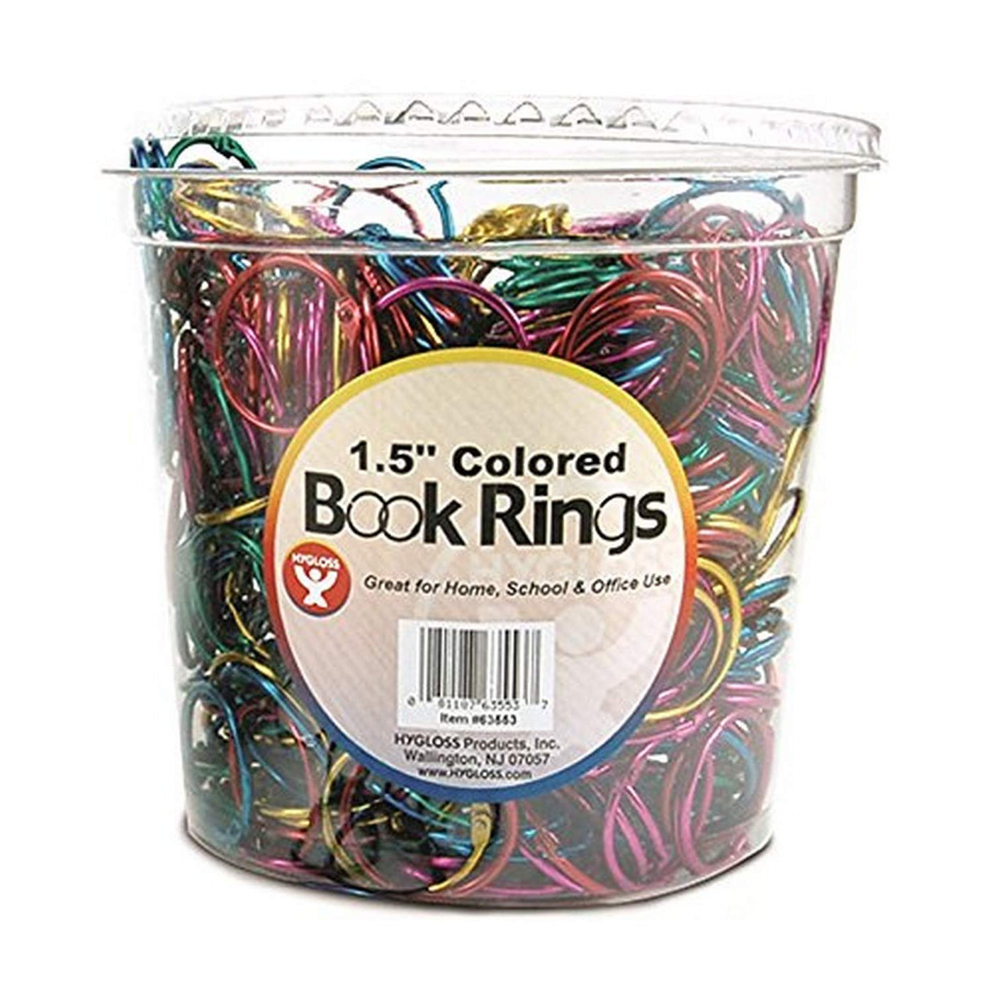 The Hygloss Products Book Rings Are Useful For Anyone Looking To Get A Little More Organized. Anything That Has A Hole In It Like Papers Or Keys Can Be Securely Stored On These Colorful Rings. Each Variety Pack Comes With 250 Rings In A Counter Display Bucket. They Measure 1.5 Inches In Diameter. These Book Rings Are Made Out Of Tough, Strong Steel That Is Built To Last. They Are Designed To Keep Their Shape And Not Stretch. You Will Be Amazed How Much Weight These Rings Can Support. Each Variety Pack Contains An Assortment Of Vibrant Metallic Rings. Assorted Colors In Each Pack. They Are Perfect For Anything You Hole-Punch Such As Flashcards, Recipes And Phone Numbers. They Are Even Popular As A Keychain! Keys Of All Sizes Will Go On And Off With Ease, But Stay Securely Locked In Place When You Close The Latch. Put Flashcards Onto Colorful Book Rings To Make Studying Fun And Organized. The Metallic Red, Gold, Green, Blue, Purple, And Pink Colored Rings Really Stand Out. They Wont Fade Or Rub Off Easily. Get Organized Today With These Fun, Durable Binding Rings!