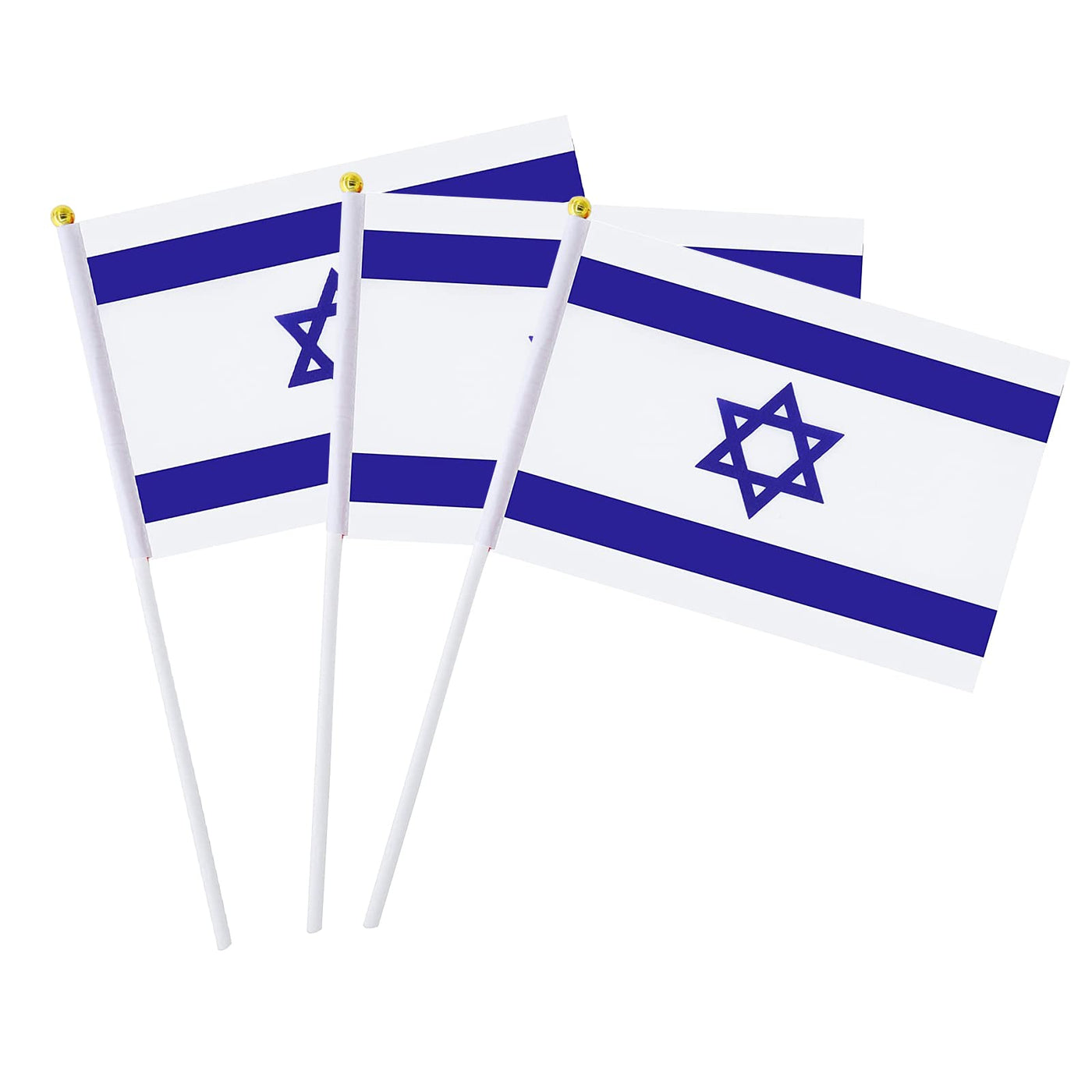 Israel Hand Held Mini Small Flags On Stick Double-Sided Printing And Dyeing,Color Bright,Durable,Do Not Fade.Can Be Used Party Classroom Olympics Festival Grand Opening Bar Sports Clubs Parades Parties Decorations. The Flags Made Of Polyester,The Stick Made Of Plastic. Pack:Includes 20 Stick Flags. Flag Size:8.2Inches 5.5Inches,12 Inches Plastic Stick. Used:Can Be Used Party Classroom Olympics Festival Grand Opening Bar Sports Clubs Parades Parties Decorations. For Flags,If You Had Any Problem After Receiving Our Products,Please Tell Us.We Will Provide The Best Shopping Experience For Each Customer.