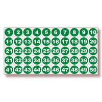 Isyfix Green Consecutive Number Stickers - 1 To 50, 1-Inch, 1 Set - Vinyl Self Adhesive Premium Decal Ideal For Inventory, Stora