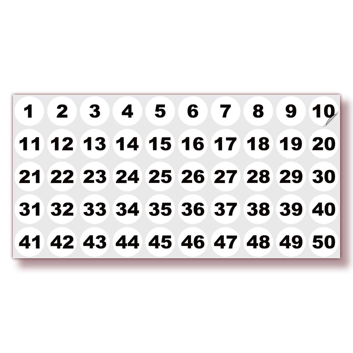 White Premium Vinyl 1-Inch Numbers Consecutive Number Sticker Premium Quality Waterproof, Weatherproof, Scratch And Uv Resistant Isyfix Have Designed This Numbers Sticker With Engineering High Performance Grade Vinyl For Last Up To3 Years In Outdoors. How To Install We Recommend You To Thoroughly Clean The Substrate To Remove Any Dust, Grease, Or Silicone Before Applying The Adhesive. Can Be Applied To Any Smooth Surface Like Windows, Plastic, Metal, Glass, Binders, Skateboards, Cars, Computers, Guitars, Bottles, Phones, Bmx, Trash Bins Lids, Equipment, School Sign, Address Light, Vehicles, Boats, Identifying Property, Craft, Scrabble, Steel Mailbox, Street Numbers, Garage Bins, Porch Pillars, Labeling Machines, Bible School Signs, Room Number Labeling, Yacht, Etc. Does Not Adhere Well To Textured Mailboxes Surfaces, We Do Not Recommend You Apply This Decal To A Texture Powder Coated Steel Mailbox. After The Purchase, We Will Send You An Email With An Attached Pdf Containing The Install Instructions. What You Will Receive Includes: 50 Pcs Round Stickers, Number 1-50, Size: 1 Inch, Black Printing & White Backgound.