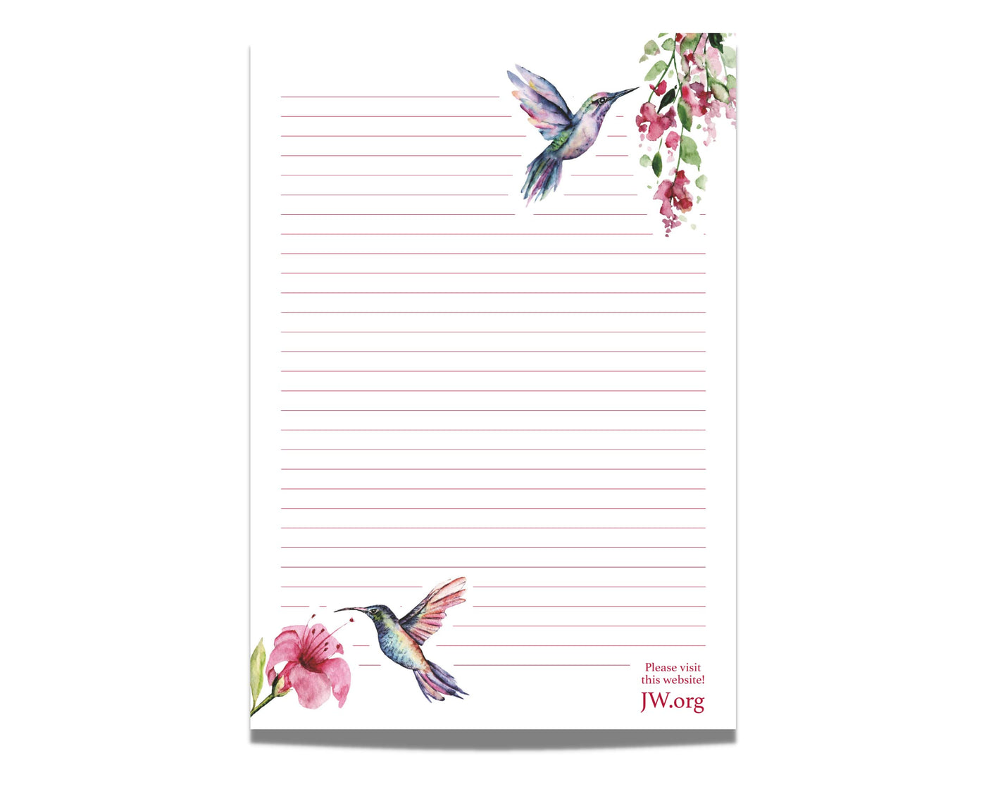 Jw Letter Writing A4 Pad Stationery Paper Lined Gift Notepad Writing Sheets (Humming Birds)