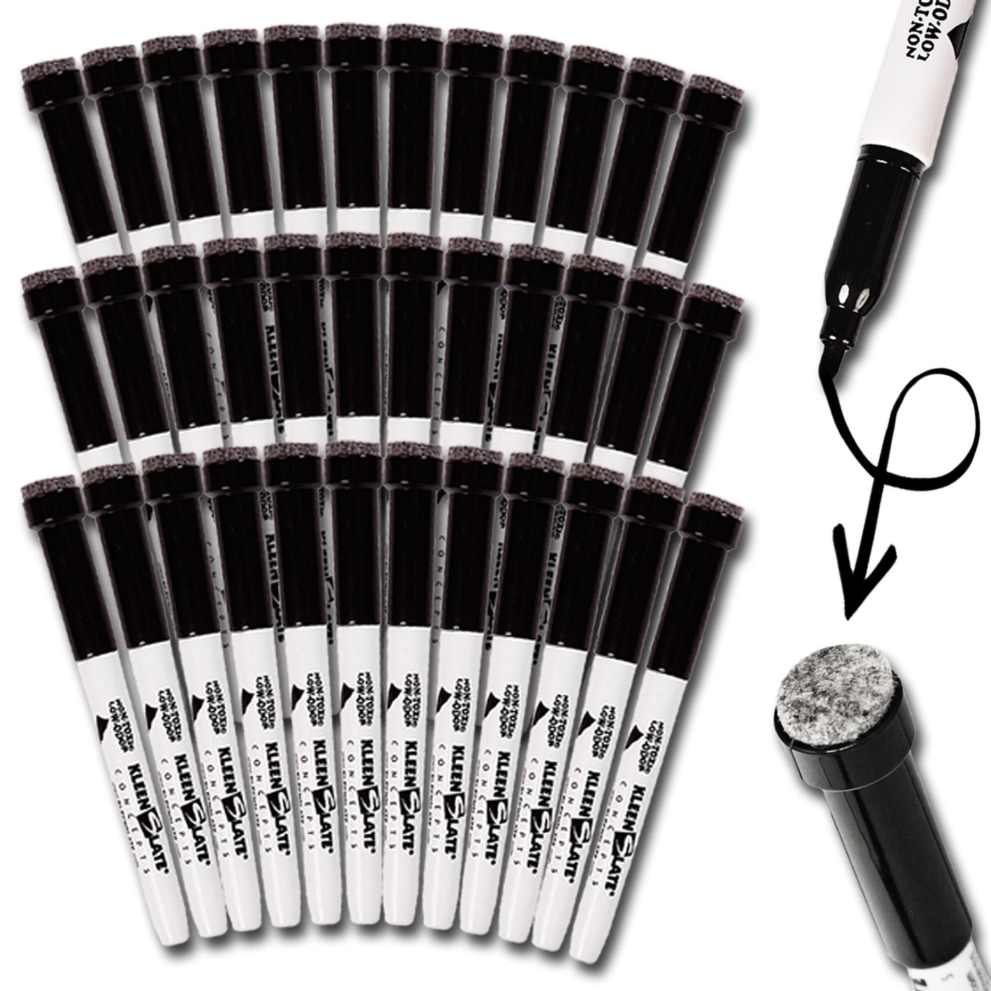Kleenslate (36) Black Low Odor, Non-Toxic Dry Erase Markers With Eraser Cap, Bullet Point