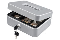 Kyodoled Cash Box With Money Tray,Small Safe Lock Box With Key,Cash Drawer,7.87'X 6.30'X 3.54' Medium Specifications: Product Dimension: 7.87'X 6.30'X 3.54' (200*160*90Mm) Color: Lightgrey Material: Cold-Roll Steel Sheets, Stainless Steel (Handle), Plastic (Money Tray) Features: 1.The Cash Boxes Is Small And Easy To Use, Which Is Perfect For Kids To Manage Their Money; 2.The Internal Structure Makes It Convenient For You To Organize Your Valuables Orderly; 3.It Is Ideal For Supermarket,Dorm Rooms, Hotel Rooms, Cars, Travel And So On. Package Includes: 1 * Cash Box 2 * Keys 1* Packaging Box Important Notice1.The Items In The Money Box Are Photographic Props, Not Shipped With The Money Box. Please Know It!2.To Avoid Locking The Keys Into Cash Box, You Cannot Take The Keys Off If You Don'T Lock It.3.Please Contact With Us By E-Mail Immediately If You Have Any Problem With The Product, We Will Reply Within 24 Hours.New & Unused - You Will Receive One New And Unused Combination Money Box With Each Purchase. Please Note: All Metal Box, If It Have Some Minor Imperfections Such As Scratches Or Uneven Painting In Shipping Please Contact Us,We Will Fully Responsible For Any Quality Issue For Our Products.Any Questions Please Contact Us Via Email ,We Will Solve For You At The First Time.