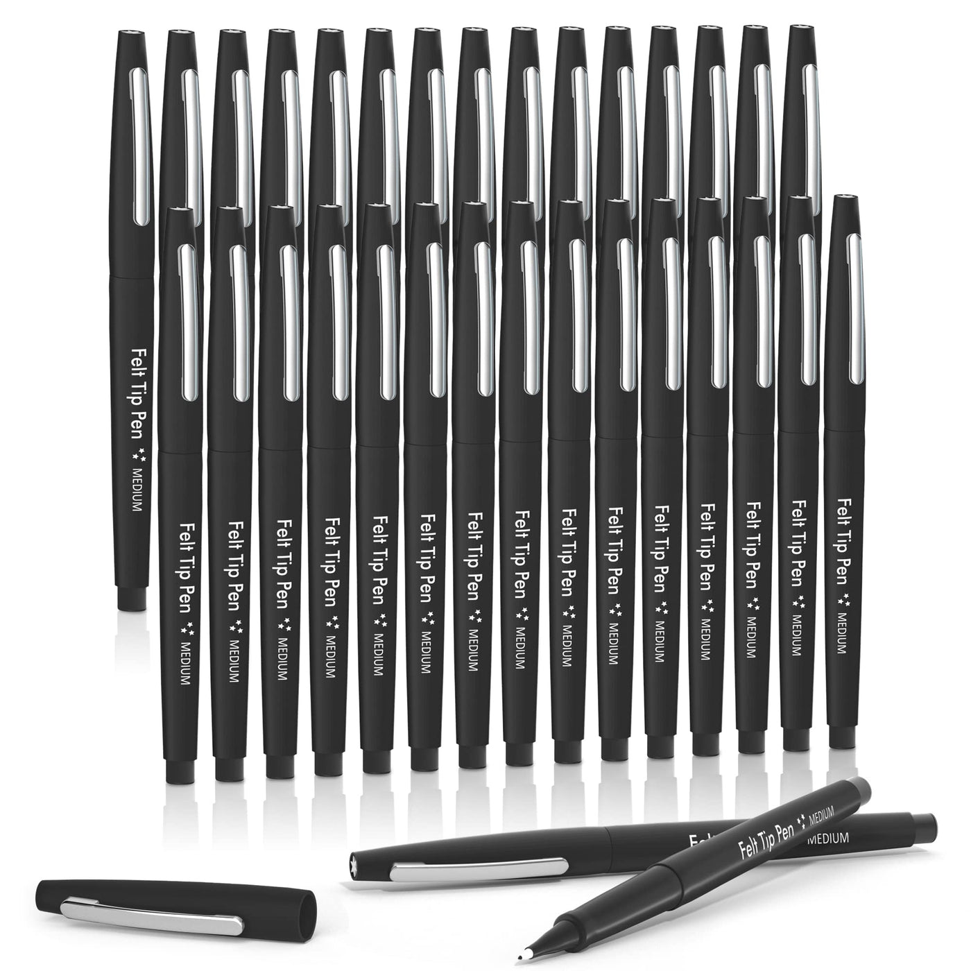 Lelix Felt Tip Pens, 30 Black Pens, 0.7Mm Medium Point Felt Pens, Felt Tip Markers Pens For Journaling, Writing, Note Taking, Planner, Perfect For Art Office And School Supplies