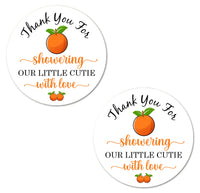 Little Cutie 40 Thank You For Showering Stickers, 2 Inch Big Round Glossy Labels, Clementines Theme For Baby Shower, Birthday, G