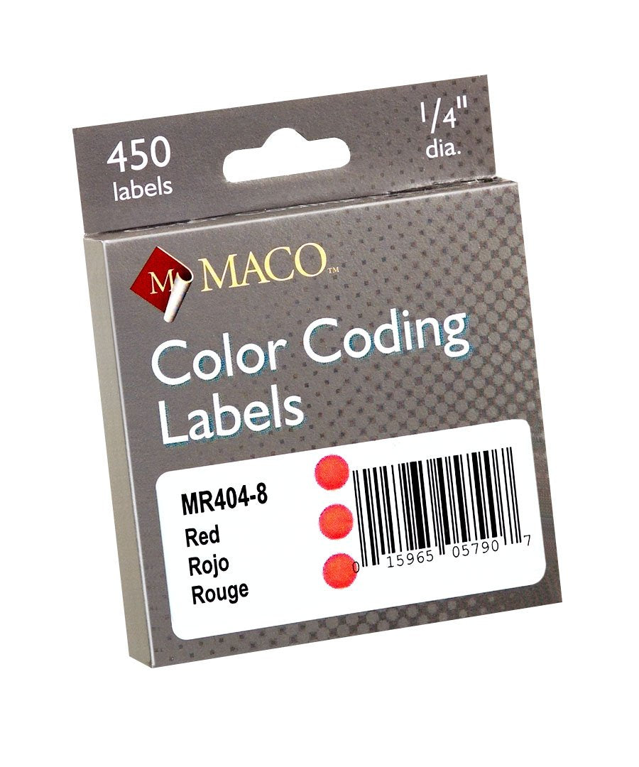 Maco Red Round Color Coding Labels, 1/4 Inches In Diameter, 450 Per Dispenser Box (Mr404-8)