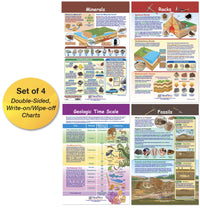 The Four-Chart Set Covers Key Concepts Related To Core Earth Science Topics. Each 18 X 12 Chart Is Double-Sided And Laminated. One Side Provides An Illustrated Overview Of The Topic, While The Reverse Features Write-On/Wipe-Off Graphic Organizers, Problem-Based Questions And Other Review Activities. The Rocks, Minerals & Fossils Bulletin Board Chart Set Includes The Following Charts: Geologic Time Scale Minerals Rocks Fossils.