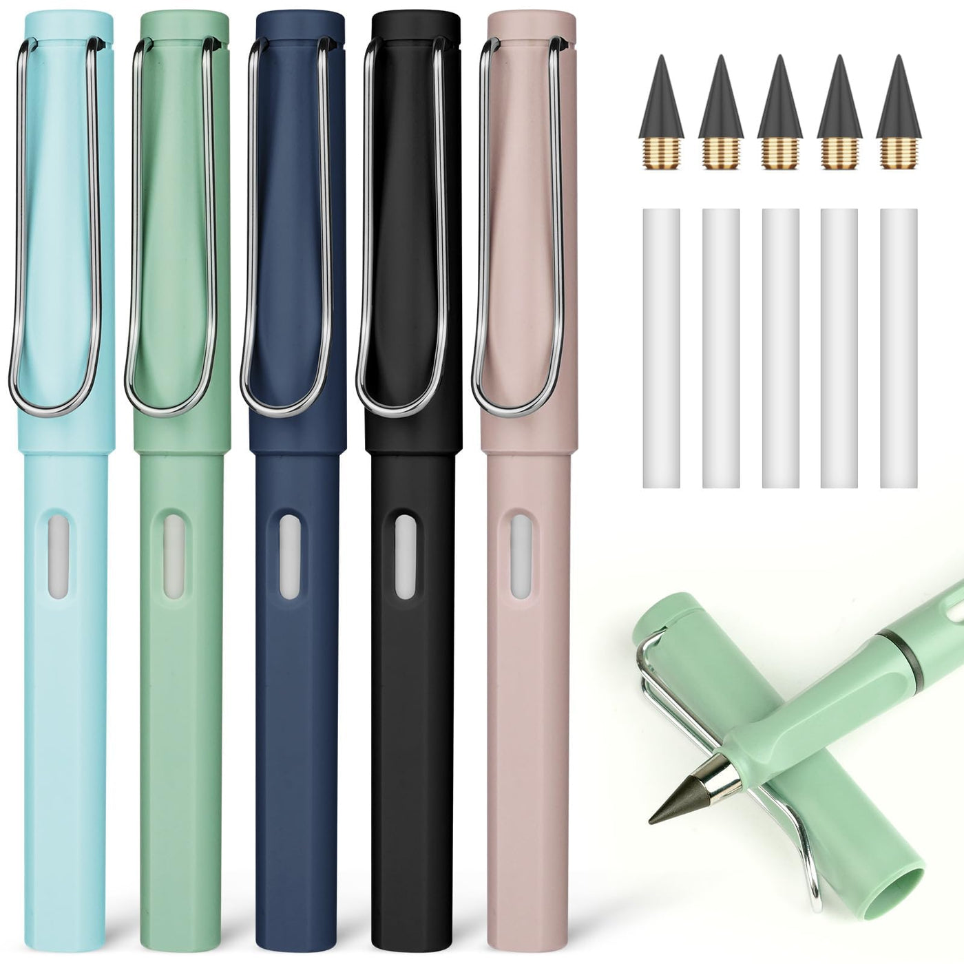 Offcup Infinity Pencil,5Pcs Inkless Pencil Inkless Magic Pencil With Extra 5 Eraser Reusable Everlasting Pencil With 5 Replaceab
