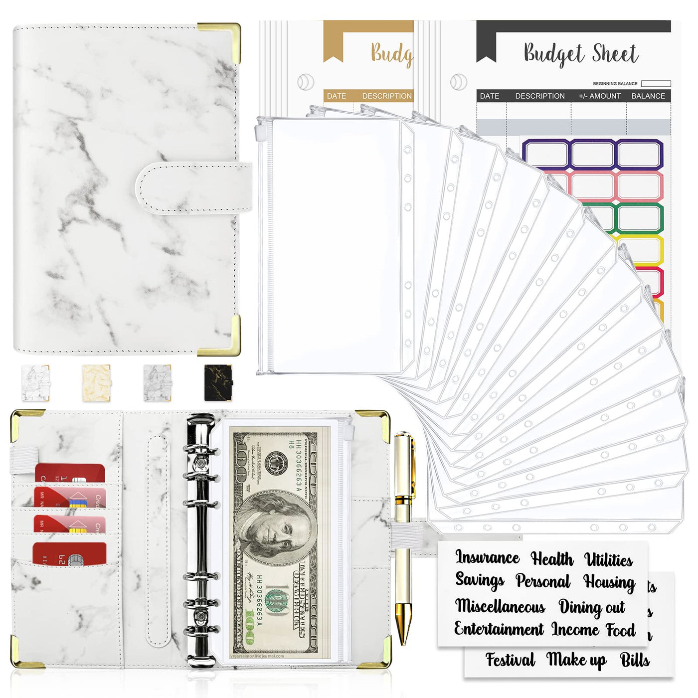 Onlyesh Budget Binder, Cash Envelopes For Budgeting, Money Organizer For Cash, 28Pcs Budget Binder With Cash Envelopes, Marble 6-Ring Money Saving Binder(White))