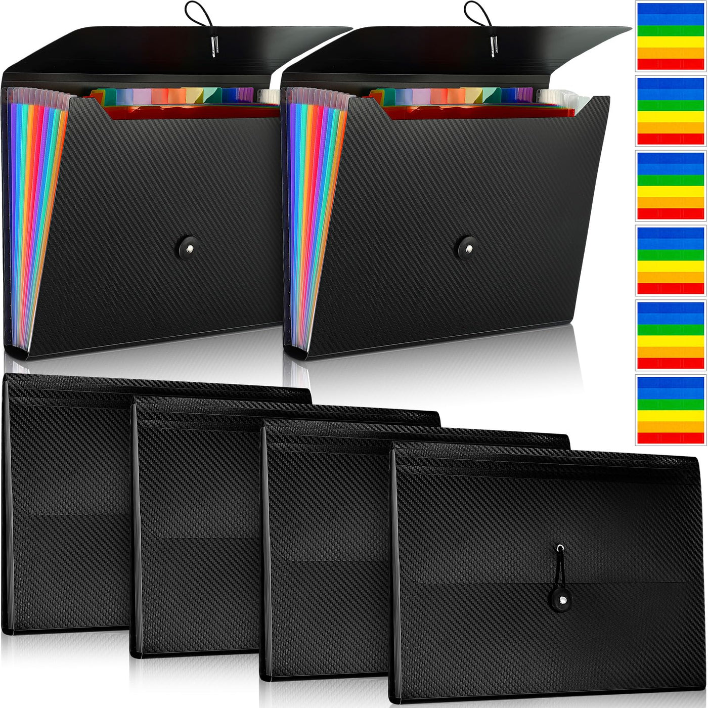 Features: School Folders Can Help Classify Your Paper Products So That You Can Quickly Find The Documents You Want In The Future, Practical And Convenient. If You Have Friends Who Need File Pockets For Documents, You Can Send Them Ours, And They Will Be Happy And Delighted To Receive These Practical Gifts. Specifications: Material: Expanding File Folders: Pp Label Stickers: Paper Color: Expanding File Folders: Mainly Black Label Stickers: As Shown On The Screen Size: Expanding File Folders: Approx. 12.99 X 9.45 X 1.77 Inches Package Includes: 6 X Expanding File Folders 6 Sheets Of Label Stickers (Each Sheet Has 18 Pieces) Notes: Manual Measurement, Please Allow Slight Errors On Size. The Color May Exist A Slight Difference Due To Different Screen Displays.