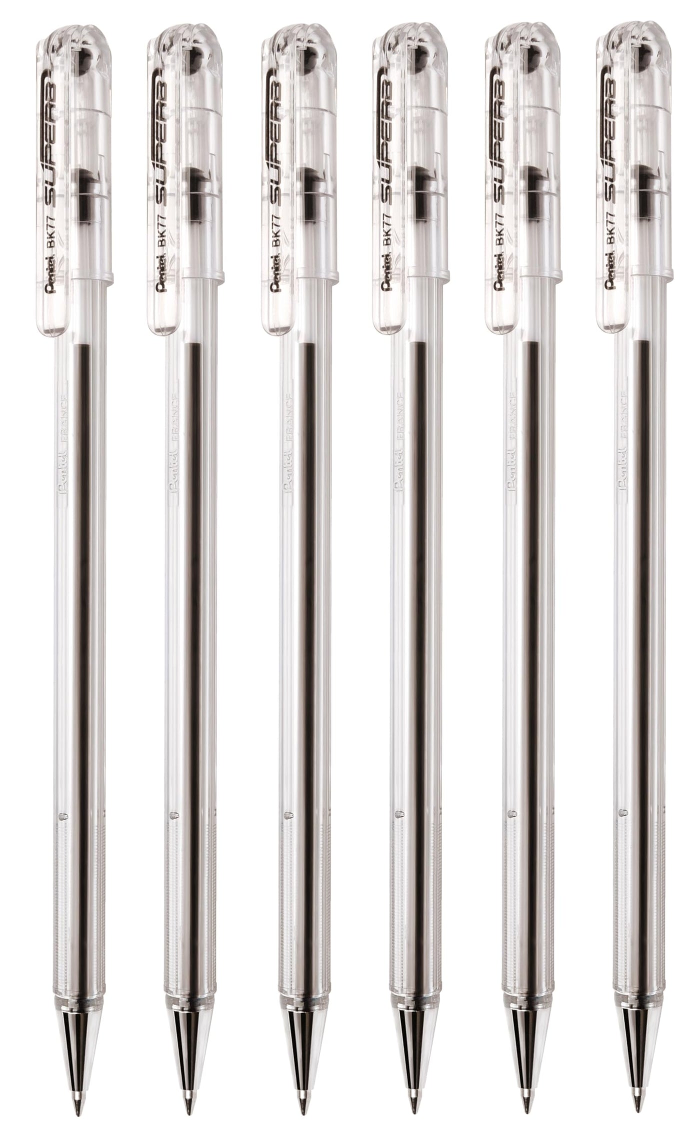 Pentel Black Superb Ballpoint Pen Ball Point Pens 0.7Mm Nib Tip 0.25Mm Line Width Fine Line Refillable Ink Bk77 (Pack Of 6)