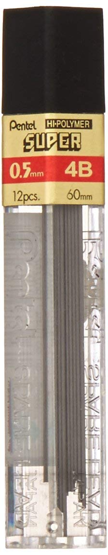 Pentel Lead Refill, 4B Hardness.5Mm, 12/Tb, Black (Penc5054B)