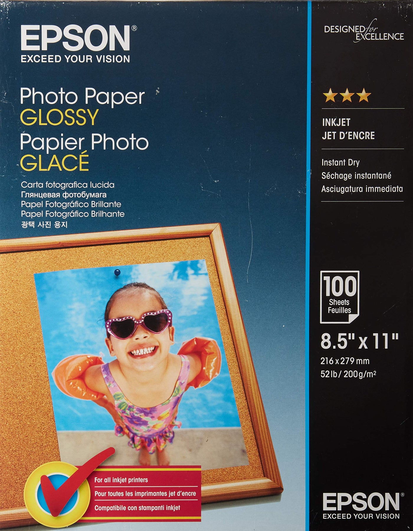 Epsons Letter Size Glossy Photo Paper, 100 Sheet Pack. Glossy Finish, Heavier Weight, Bright Paper, Great For Printing, Enlarging And Framing Favorite Glossy Photos.