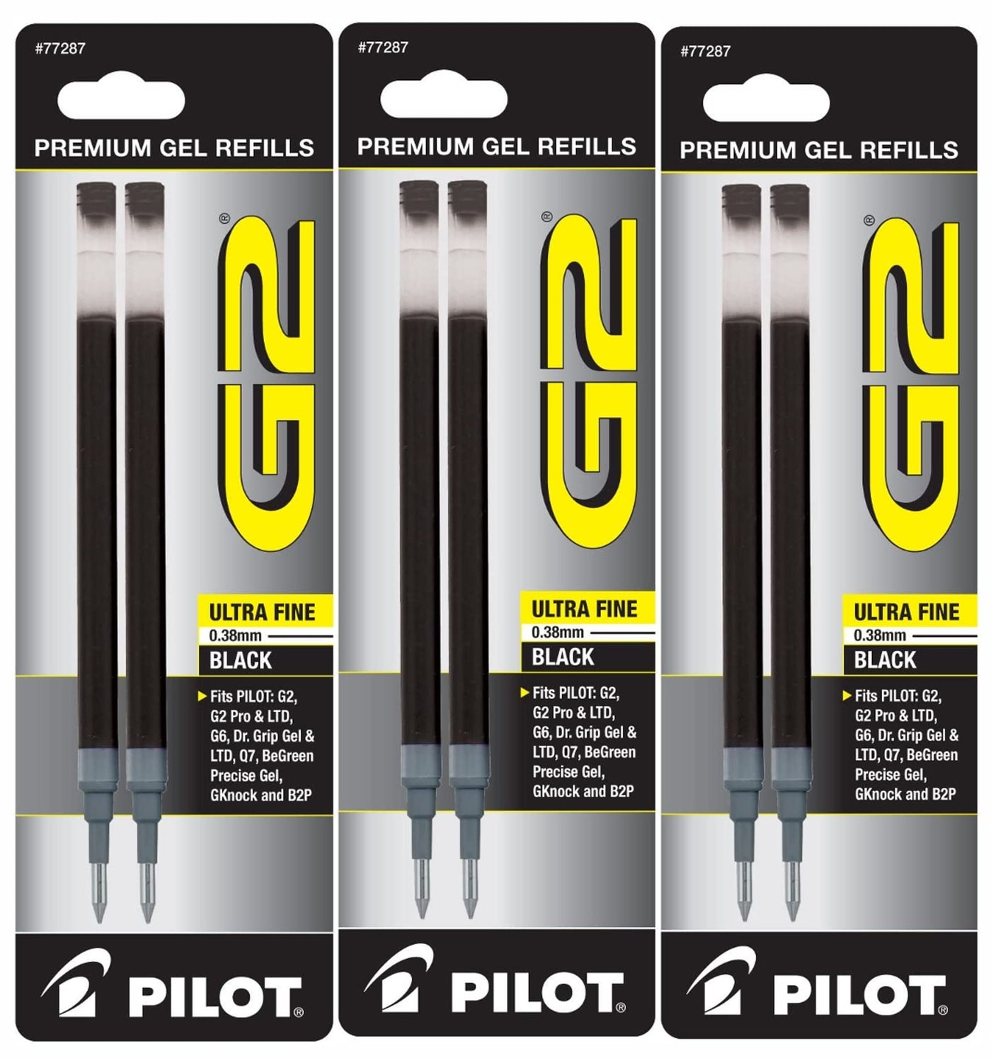 Pilot G2 Gel Ink Pen Refills, Ultra Fine Point, 0.38Mm, Black Ink, 6 Refills