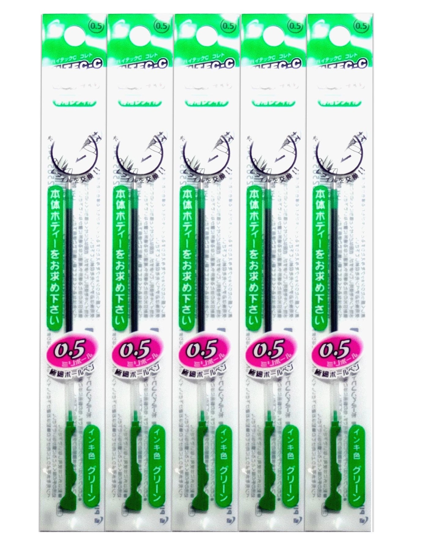 Pilot Hi-Tec-C Coleto Gel Ink Pen Refill 0.5Mm, 5 Set Green (Japan Import)