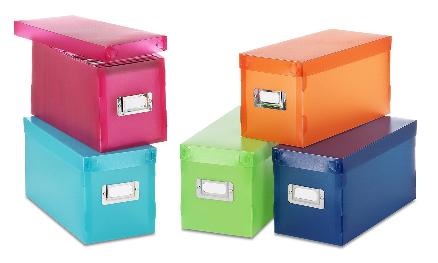 Plastic Storage Boxes, Are Great Way To Store A Variety Of Items. They Are Made Of A Durable Plastic And Are Easy To Assemble And Come In Five Fun Colors. A Convenient Stainless Metal Id Plate On The Front Makes It Easy To Label The Contents Of Each Organizer. Set Of Five.