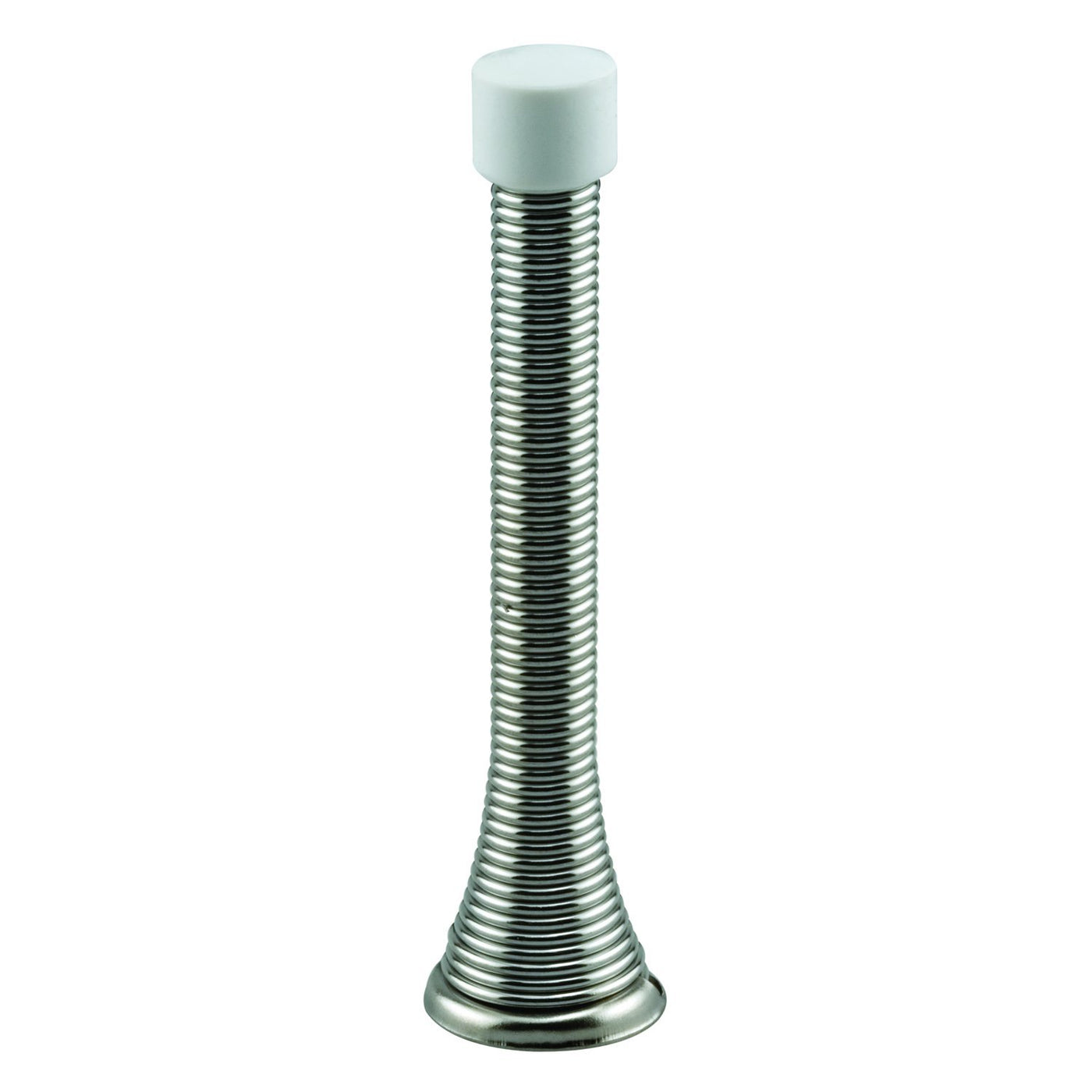 These Heavy-Duty Door Stops Are Constructed Of Spring Steel Wire And Come In A Chrome Plated Finish. They Feature A Separate Mounting Base And Screw To Allow For Use Of Longer Screws Where Broken Baseboards Are A Problem. These Door Stops Also Feature Flexible Wire Construction With A 4 Inch Reach, And A Rubber Tip To Cushion And Prevent Unwanted Damages To Nearby Walls. The Mounting Bases Of These Door Stops Have A Large 7/8 Inch Outside Diameter. Door Stops Like These Are Easy To Install And Used By Many.
