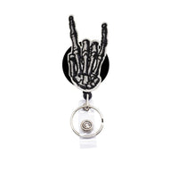 Reeleer Halloween Skeleton Hand Horns Up Sign Badge Reels Retractable, With Alligator Clip And Key Ring, 24 Inches Thick Pull Co