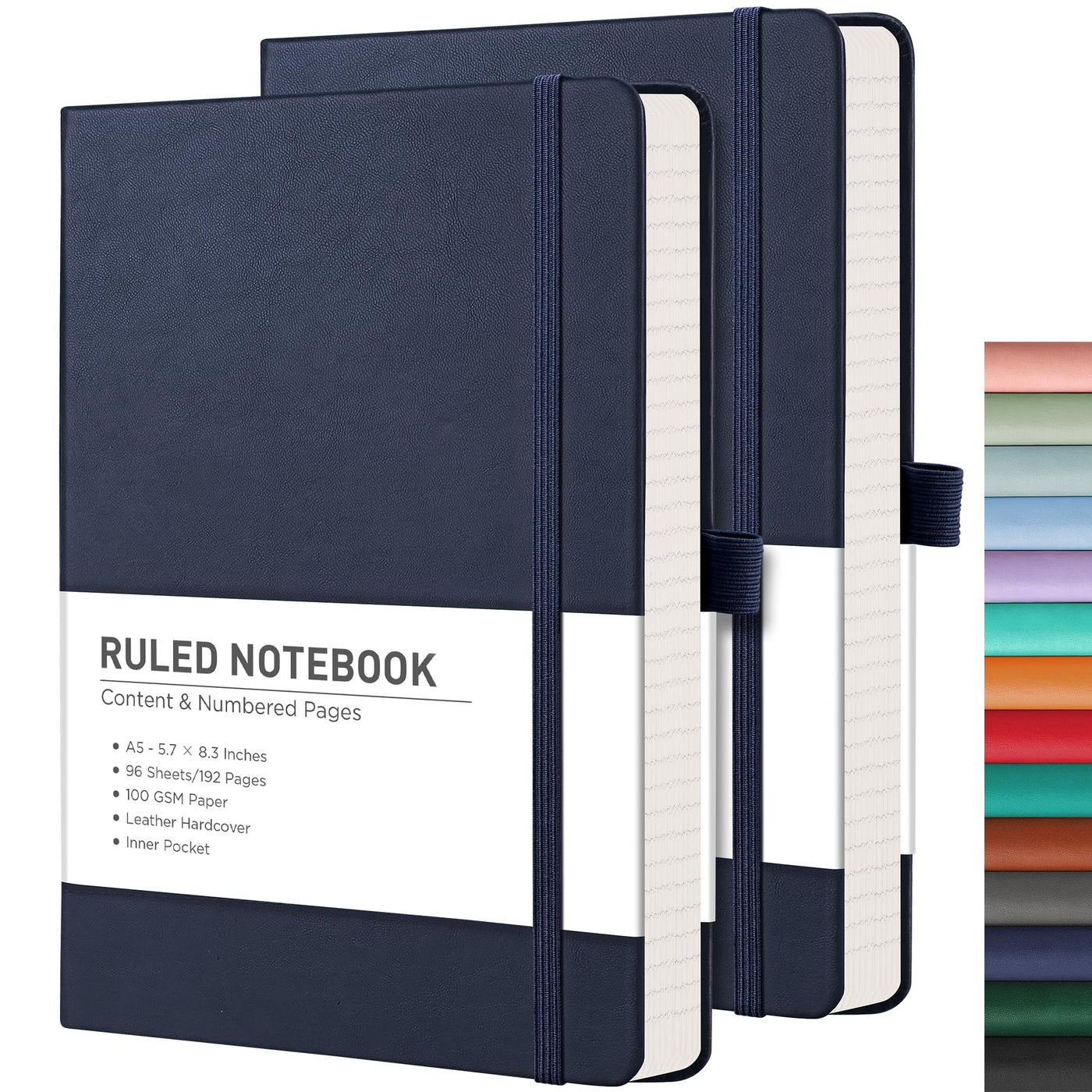 Rettacy Journaling Notebooks 2-Pack - A5 Notebooks College Ruled With 192 Numbered Pages Per Pack, For Work, School, 100 Gsm Aci