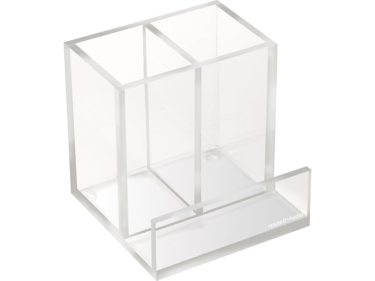Demonstrate Your Care For Details With Our 4 X 4 X 4 Acrylic Pencil Bloc, A Dual Compartment Pen And Pencil Cup With Built In Business Card Holder. Simple Utility And A Chic Modern Design Elevates Your Desk While Keeping Your Writing Implements To Hand. Durably Constructed From Hard Cast Acrylic With Finely Polished Edges. Simply Perfect On Its Own, This Desktop Organizer Integrates With The Other Pieces In Our Stackable Bloc Collection, Giving You Endless Solutions For Your Organizational Needs. The World Of Russell+Hazel Lies At The Intersection Of Color, Function And Light-Heartedness. We Have An Instantly Recognizable Style Language, Developed Through Colors And Patterns That Capture The Essence Of Who We Are And What We Stand For. Our Philosophy Is That Good Design Is Not Over-Design Or Design For Designs Sake, Rather Pleasing Design With Loads Of Functionality. While Fresh In Spirit, The Products Represent A Constant And Complete Dedication To Quality.